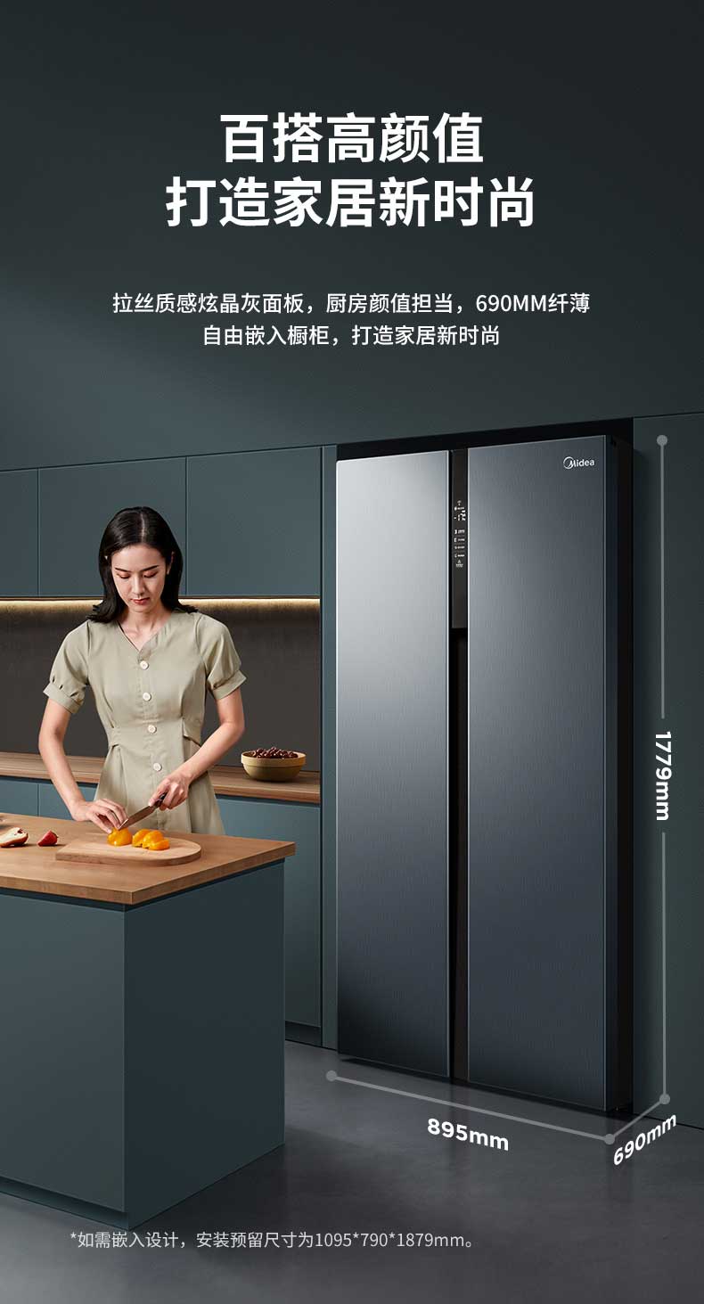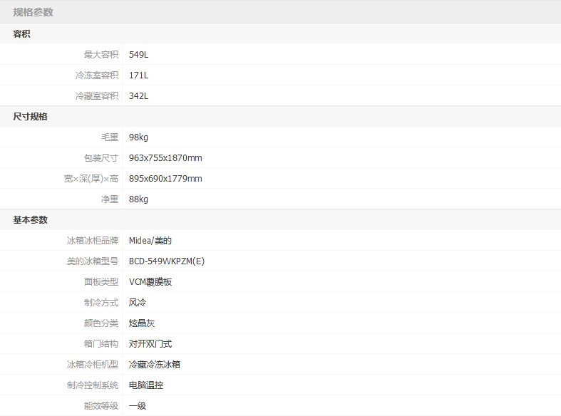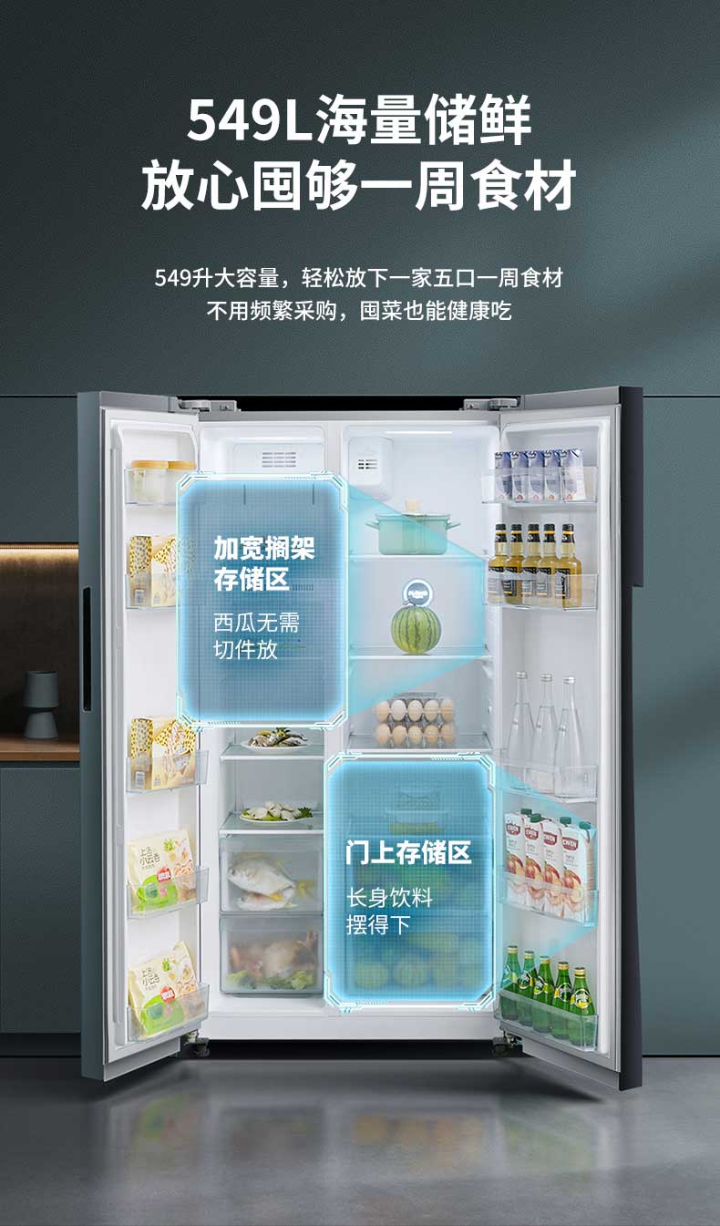 美的BCD-549升双开门家用无霜风冷一级能效变频智能对开门电冰箱
