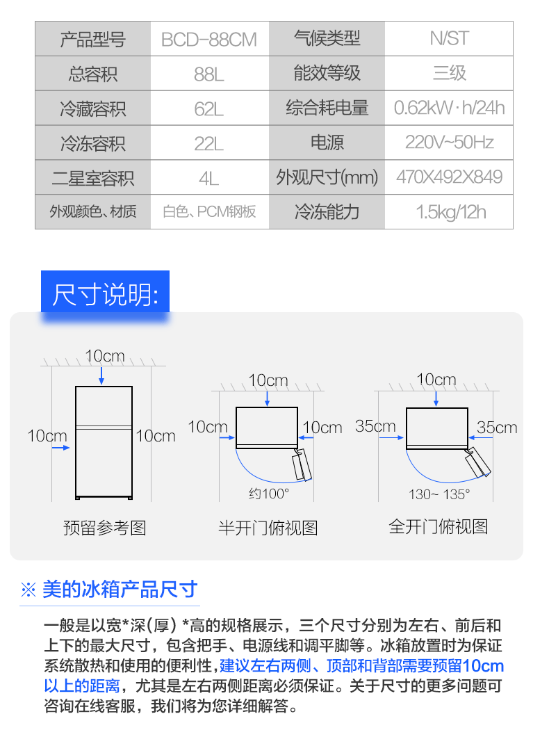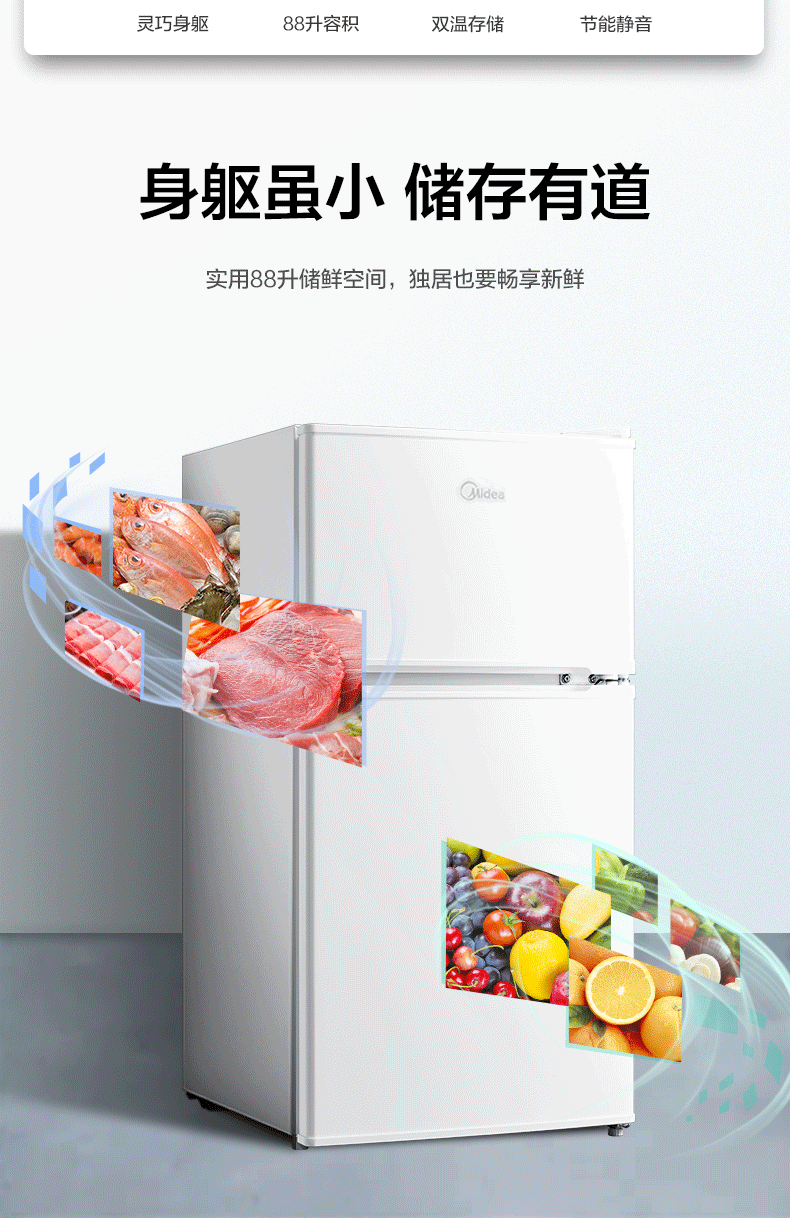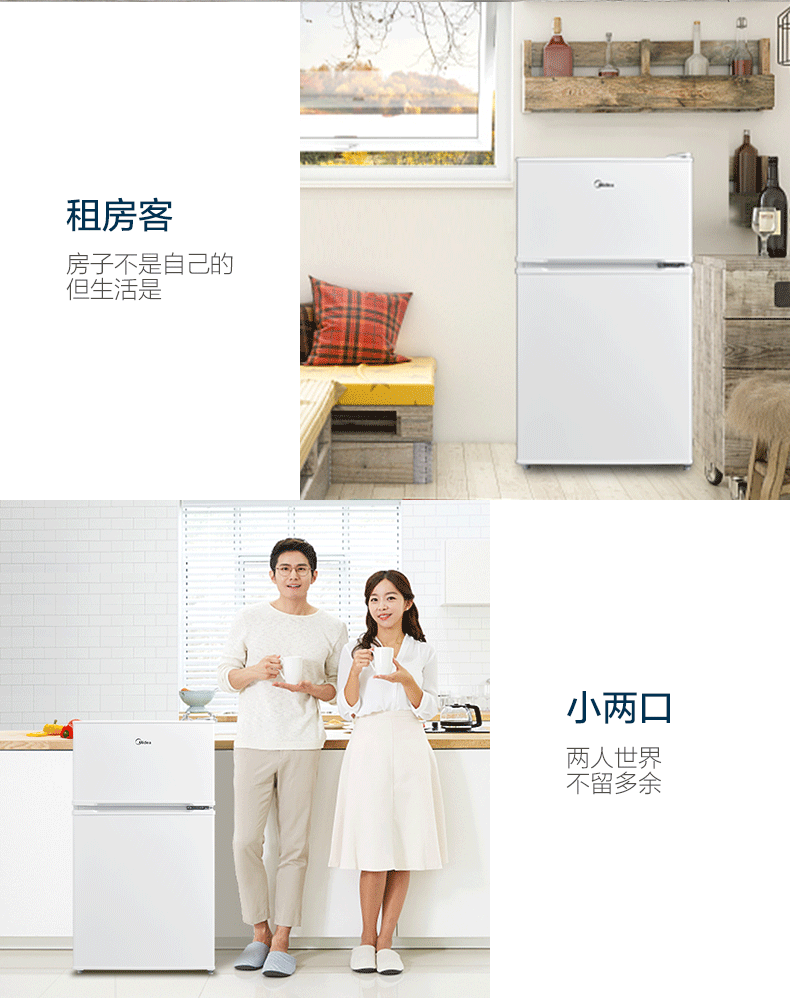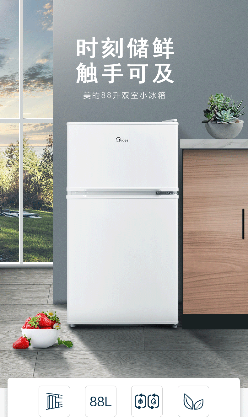 Midea/美的BCD-88CM双门两门小型冰箱宿舍家用租房节能静音电冰箱