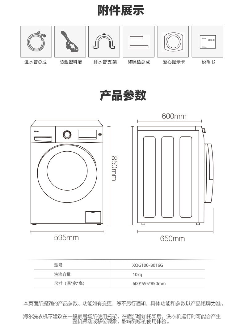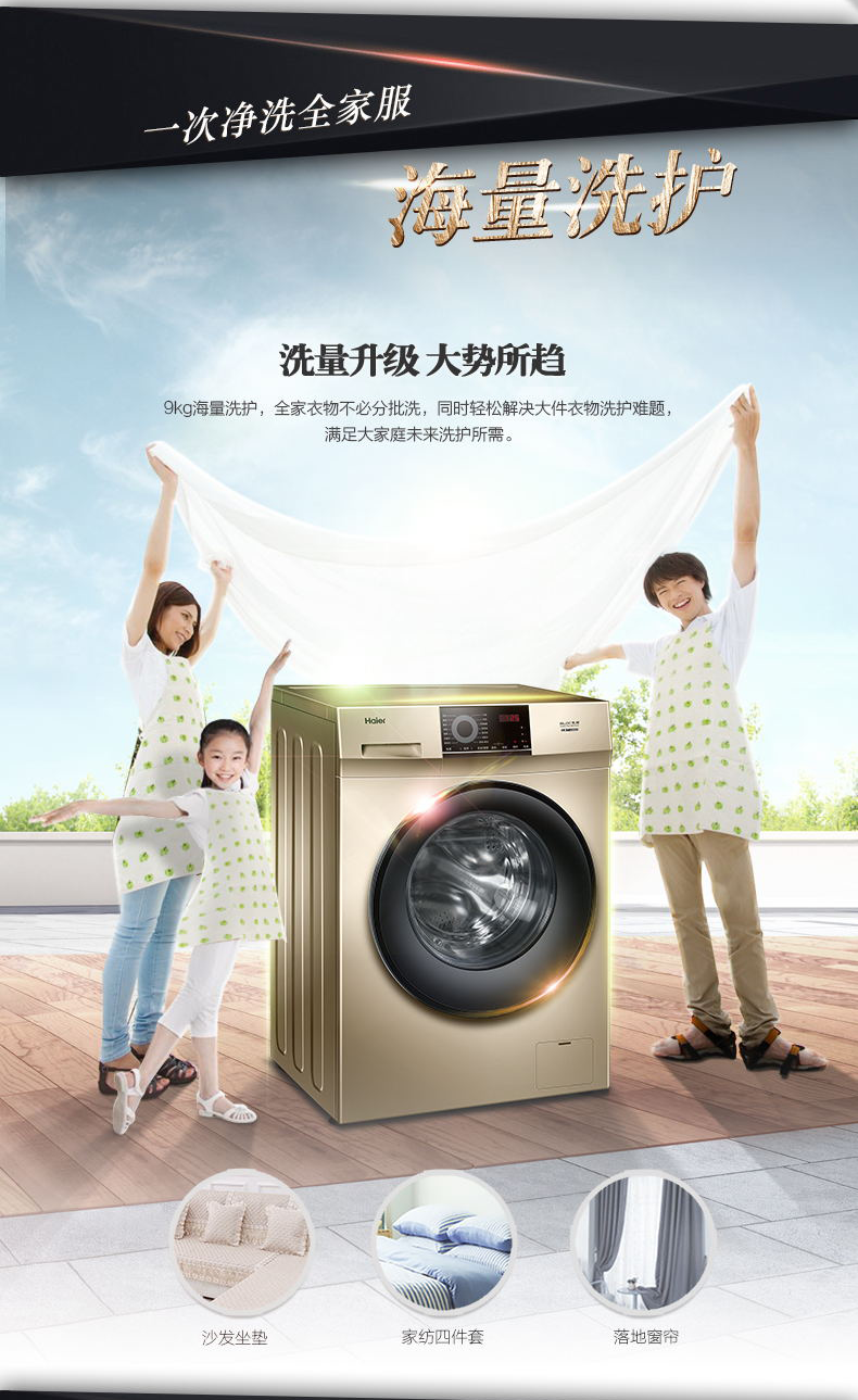 海尔变频滚筒洗衣机全自动9/10公斤家用静音