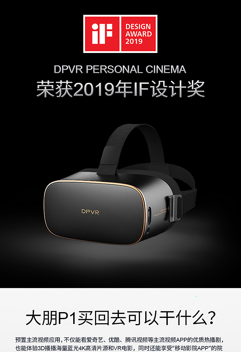 大朋P1 VR眼镜一体机 VR体感游戏机 4K高清电影AI天猫精灵语音控制3D虚拟现实全景视频 近视可用