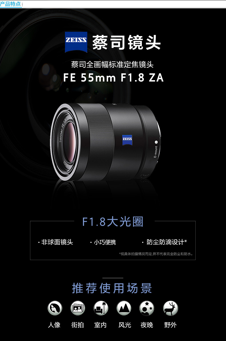 Sony/索尼 FE 55mm F1.8 SEL55F18Z 定焦 微单 全画幅 镜头