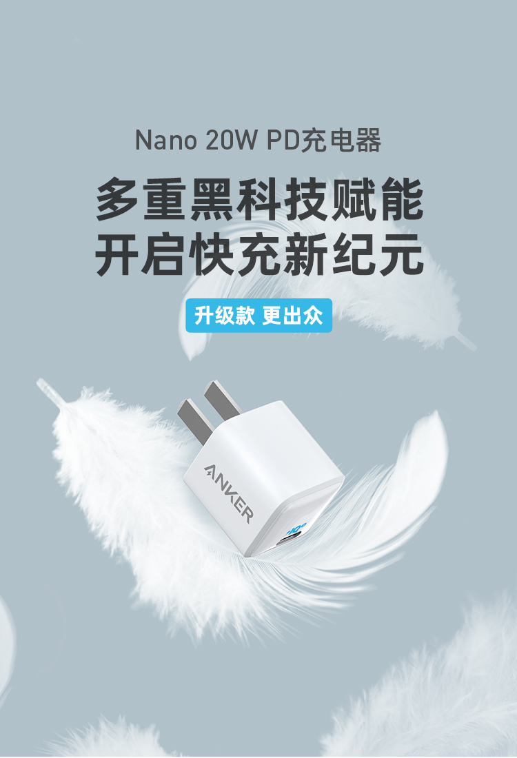 Anker安克PD快充Nano20W快速充电器适用于苹果手机iphone12/平板ipad数据线套装一套18W插头