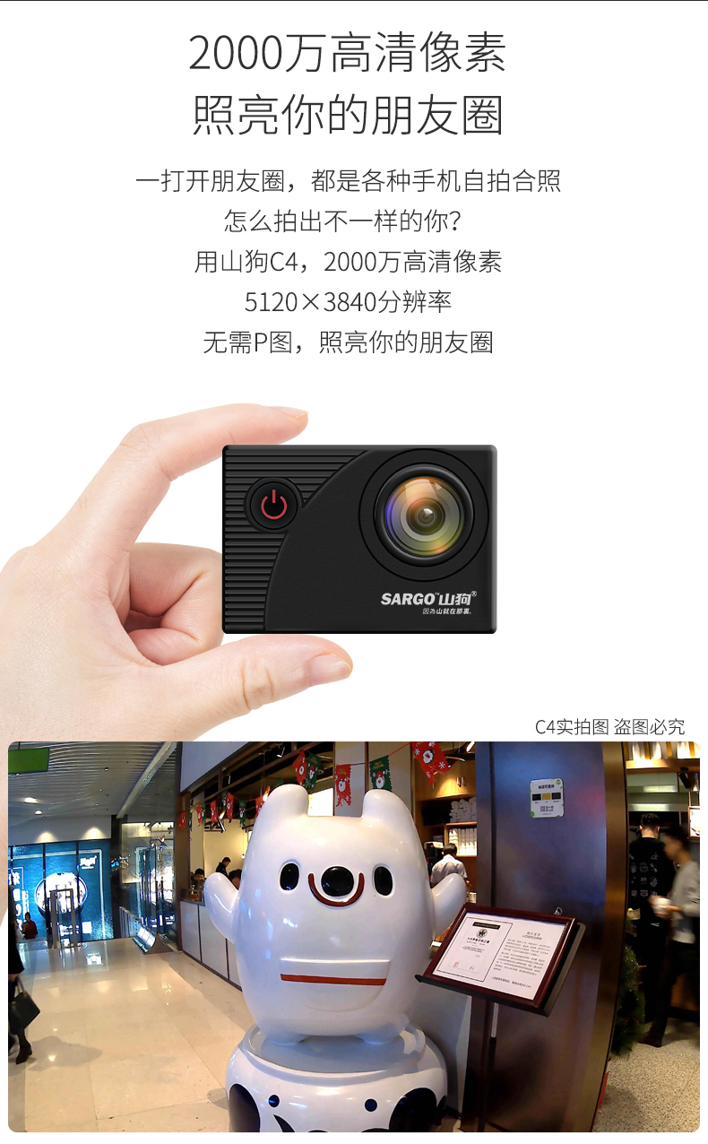 山狗C4运动相机4K高清水下摄像头盔迷你360全景骑摩托行车记录仪